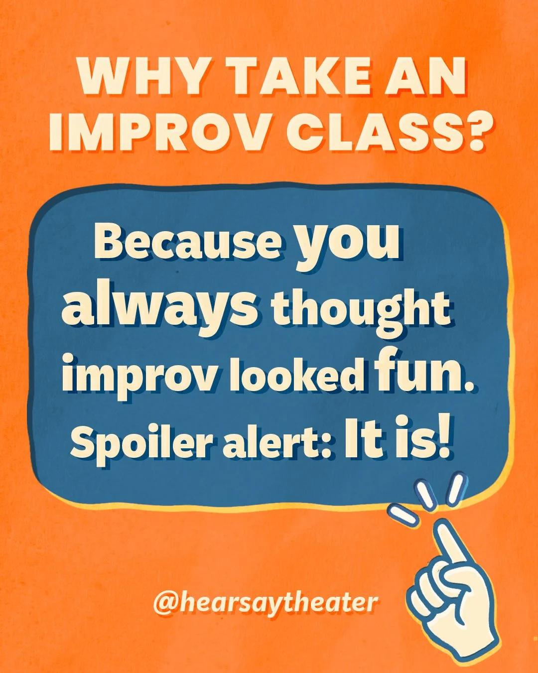 At hear.say, I design posters and other print and digital creative for shows, classes, and training programs. I also created the branding for the hear.say academy. Beyond the design work, I teach and coach improv, helping students build skills and confidence while contributing to the growth of the theater’s creative community.