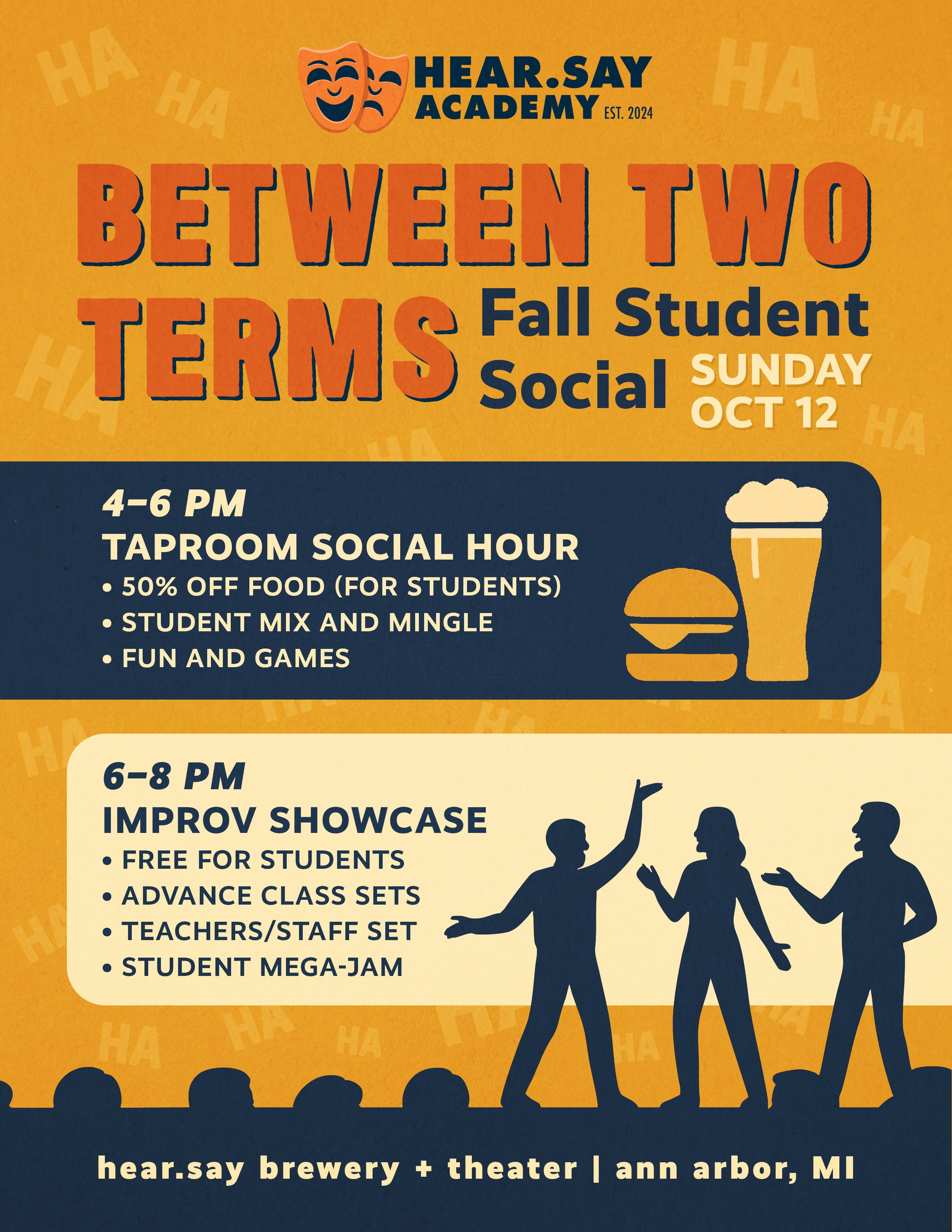 At hear.say, I manage social media strategy and day-to-day content for both the theater and brewery, overseeing planning, posting, and ongoing engagement. I also design posters and other print and digital materials for shows, classes, and training programs, and developed the branding for the hear.say Academy. In addition to my marketing work, I teach and coach improv, supporting student growth while contributing to the theater’s creative community.